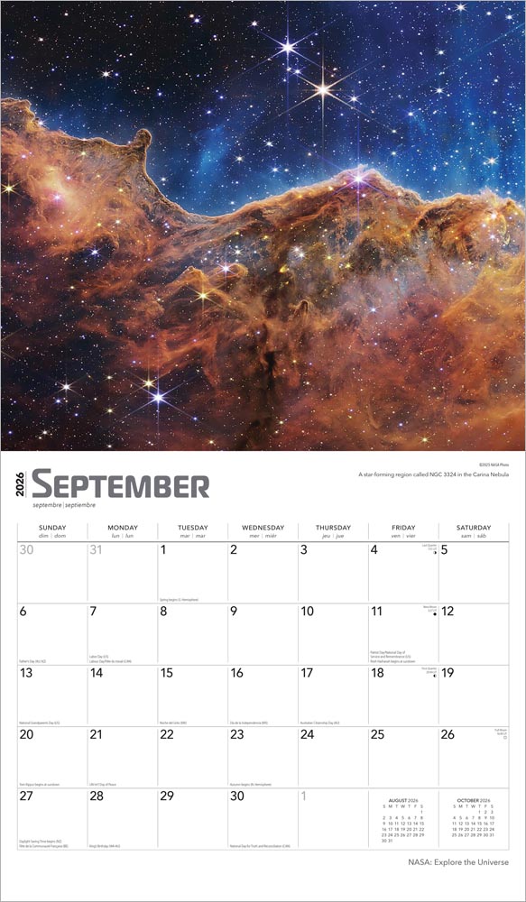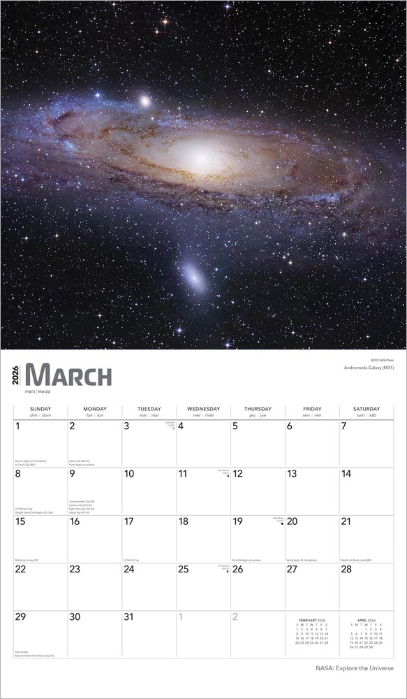 NASA Explore the Universe | 2026 14 x 24 Inch (Hanging) Monthly Deluxe Wall Calendar | Foil Stamped Cover | Plastic-Free | BrownTrout | Space Cosmos Inspiration