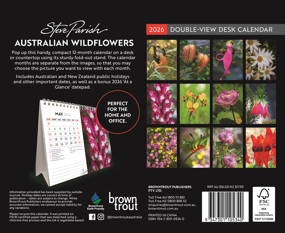 Australian Wildflowers | 2026 7.5 x 6 Inch Monthly Double-View Easel Desk Calendar | BrownTrout | Nature Floral