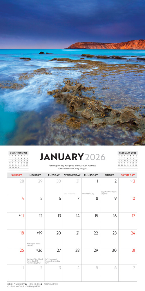 Australian Beaches | 2026 7 x 14 Inch (Hanging) Monthly Mini Wall Calendar | BrownTrout | Travel Scenic Oceania Photography