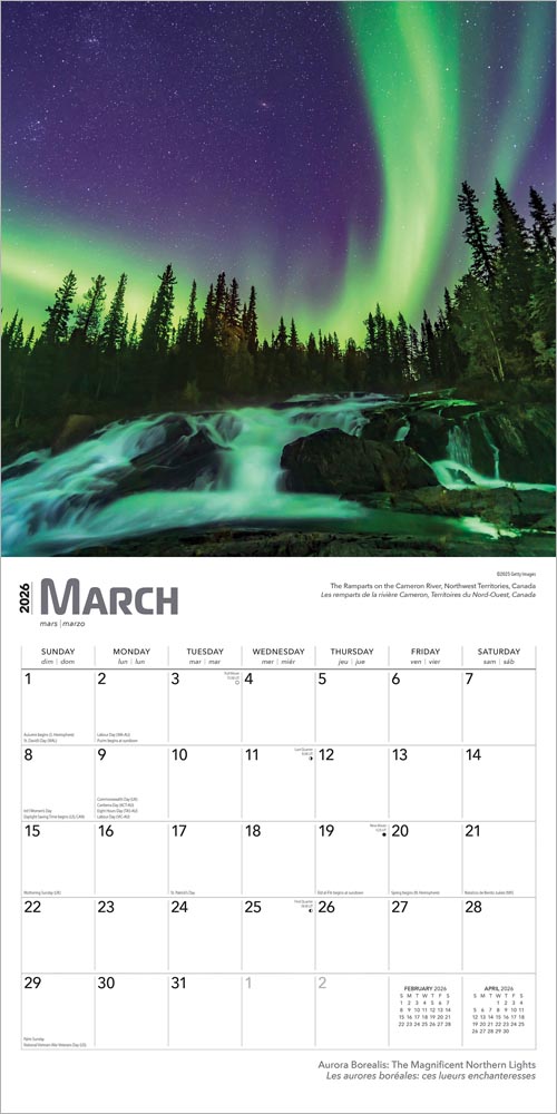Aurora Borealis | 2026 12 x 24 Inch (Hanging) Monthly Square Wall Calendar | Foil Stamped Cover | English/French Bilingual | Plastic-Free | BrownTrout | USA Alaska Northern Lights