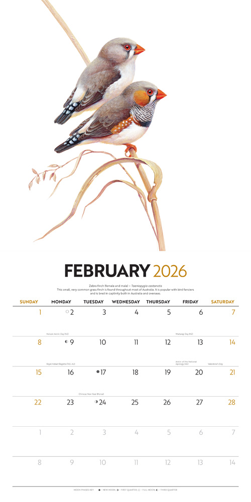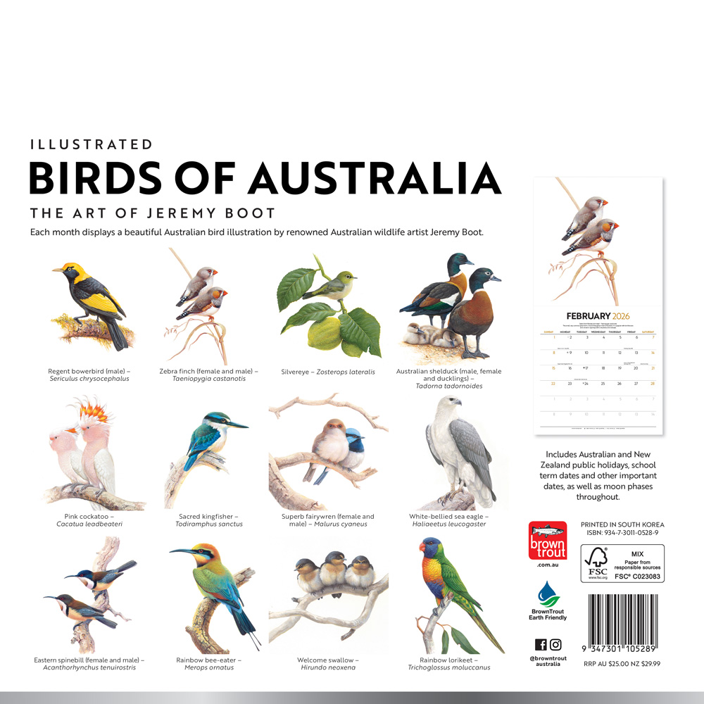 Birds of Australia | The Art of Jeremy Boot | 2026 12 x 24 Inch (Hanging) Monthly Square Wall Calendar | Foil Stamped Cover | Plastic-Free | BrownTrout | Animals Ornithology Wildlife