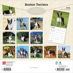 Boston Terriers | 2026 12 x 24 Inch (Hanging) Monthly Square Wall Calendar | Plastic-Free | BrownTrout | Animals Dog Breeds