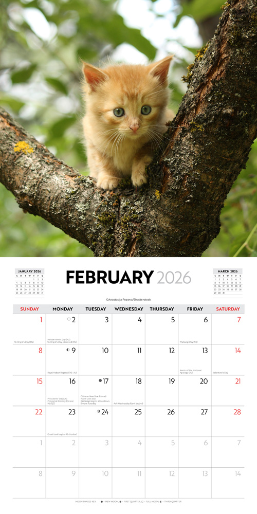 Cute Kittens | 2026 12 x 24 Inch (Hanging) Monthly Square Wall Calendar | Plastic-Free | BrownTrout | Cats Pets Feline